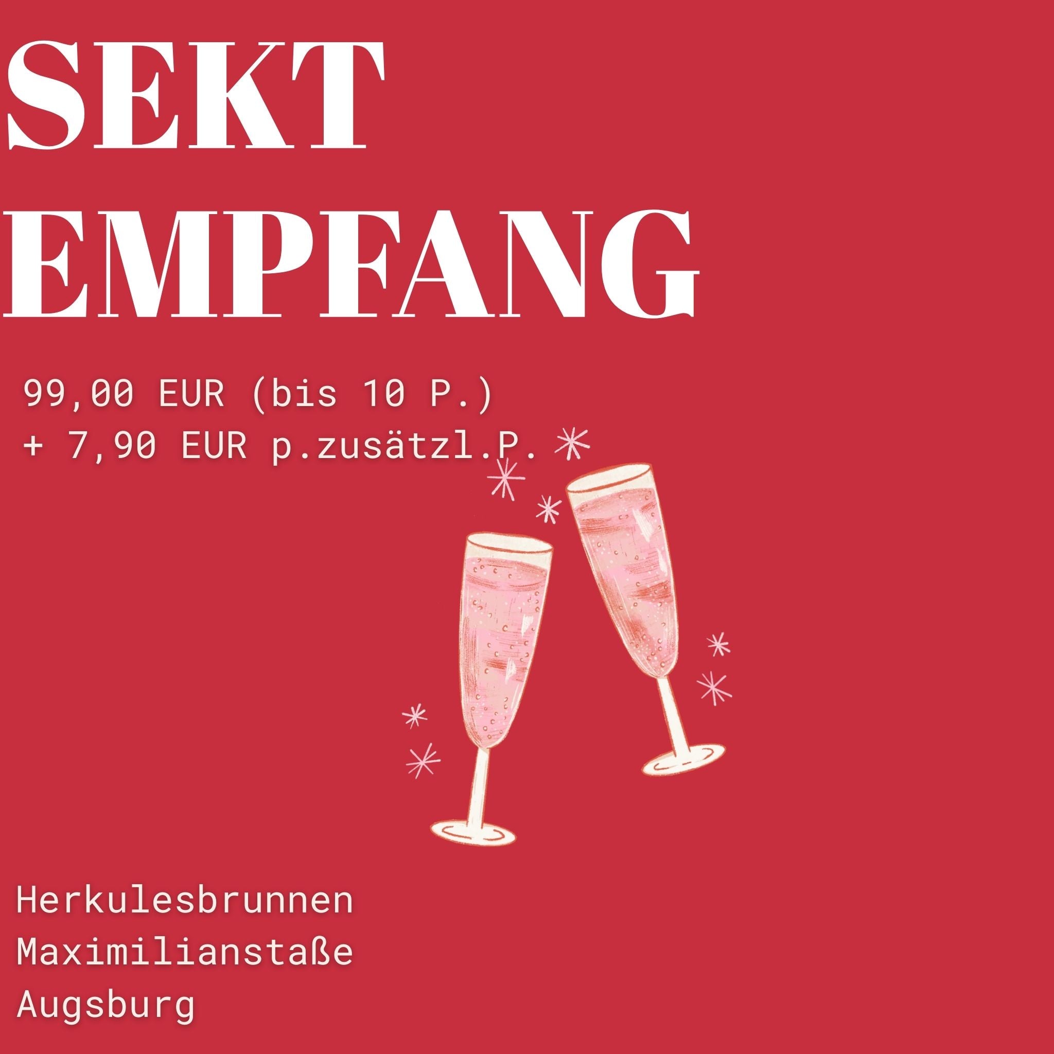 Die Trauung ist vorbei, das Glück ist perfekt – jetzt ist es Zeit, mit euren Liebsten anzustoßen. Direkt nach eurem Termin im Standesamt verwandeln wir den Platz rund um den historischen Herkulesbrunnen auf der Augsburger Maximilianstraße in eure ganz persönliche Feier-Oase.
